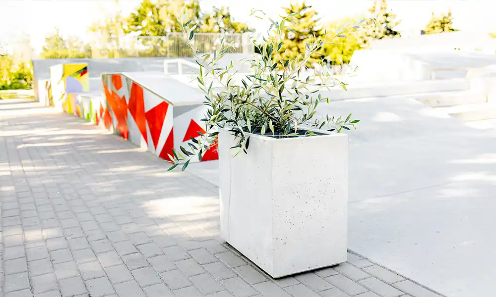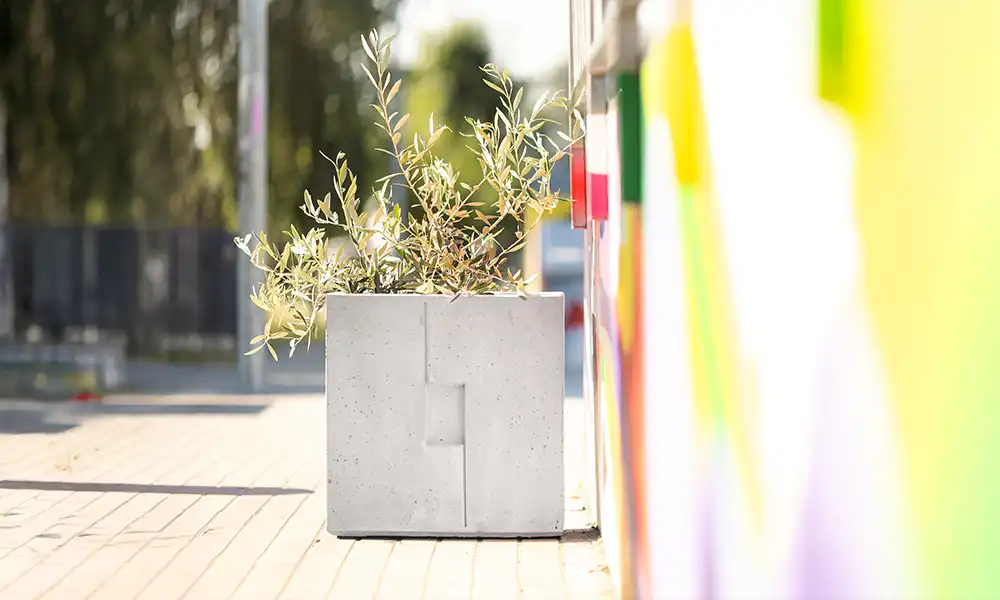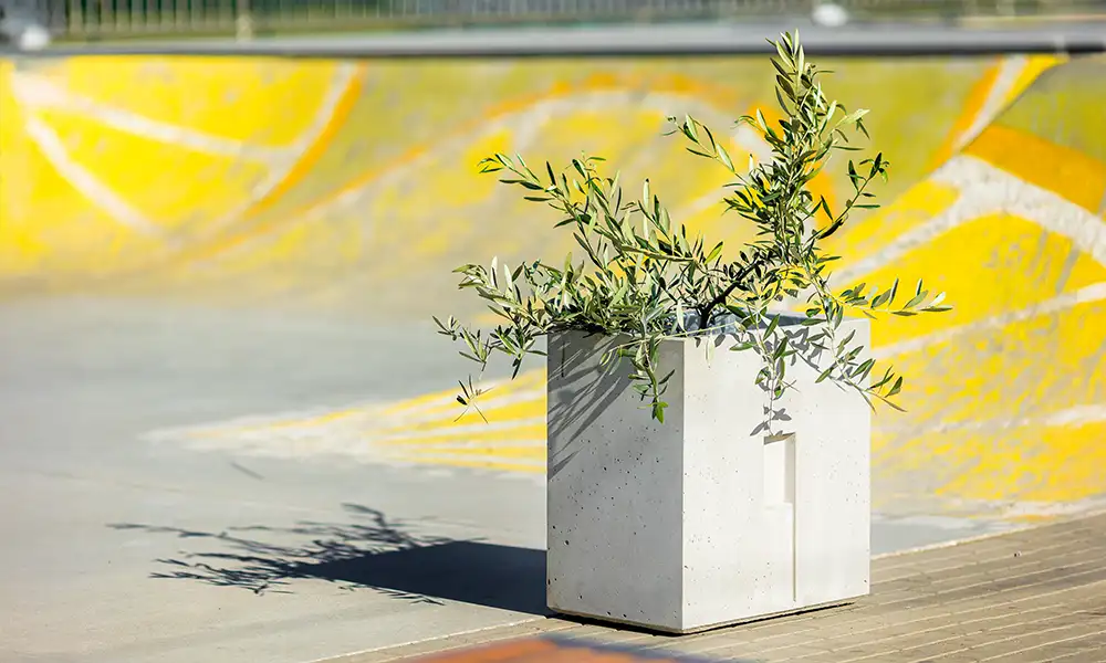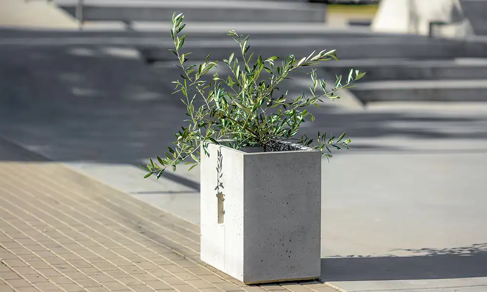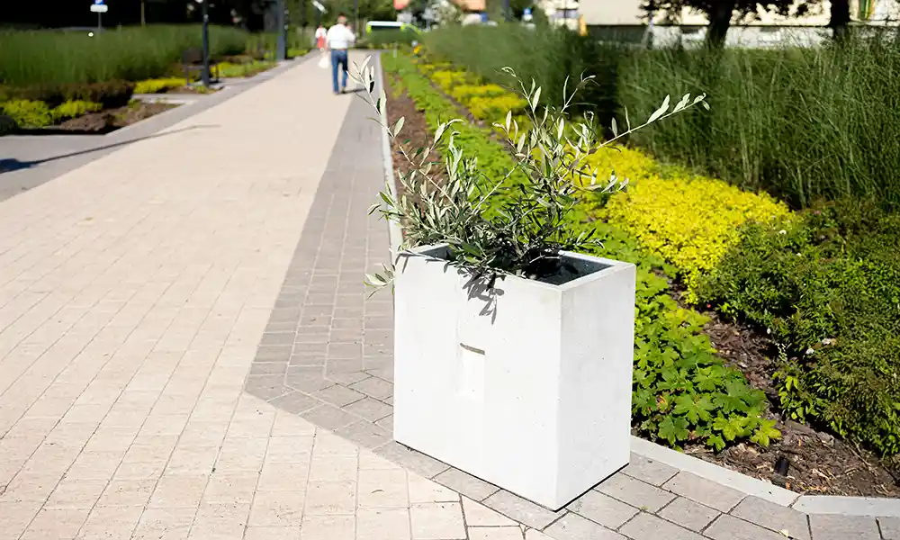 Minimalistyczna bryła sprawia, że donica nie dominuje przestrzeni, lecz stanowi estetyczne tło dla roślin. Dzięki wyważonym proporcjom może być stosowana pojedynczo jako akcent zieleni lub ustawiana w rytmicznych ciągach porządkujących przestrzeń. Neutralny charakter donicy sprawia, że łatwo dopasować ją do różnych aranżacji urbanistycznych.