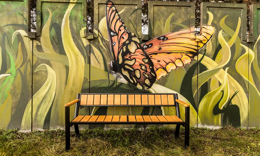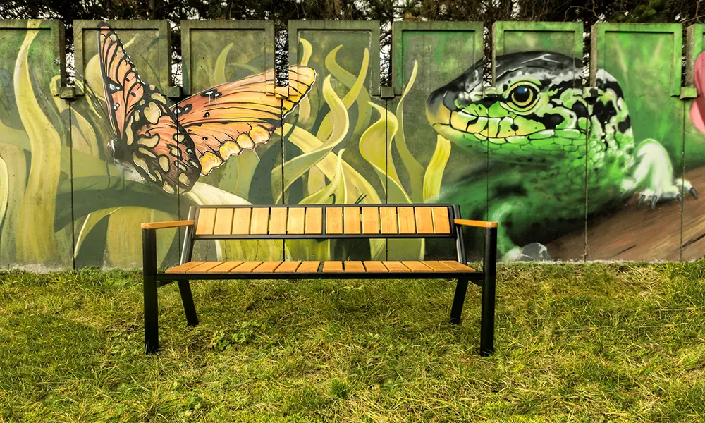 Specjalnie zaprojektowaliśmy drewniane podłokietniki, żeby nadały ławce zupełnie nowego kształtu. W efekcie doskonale uzupełniają jej konstrukcję. Dodatkowo znacznie poprawiają komfort, a także ergonomię wypoczynku osób z niej korzystających.