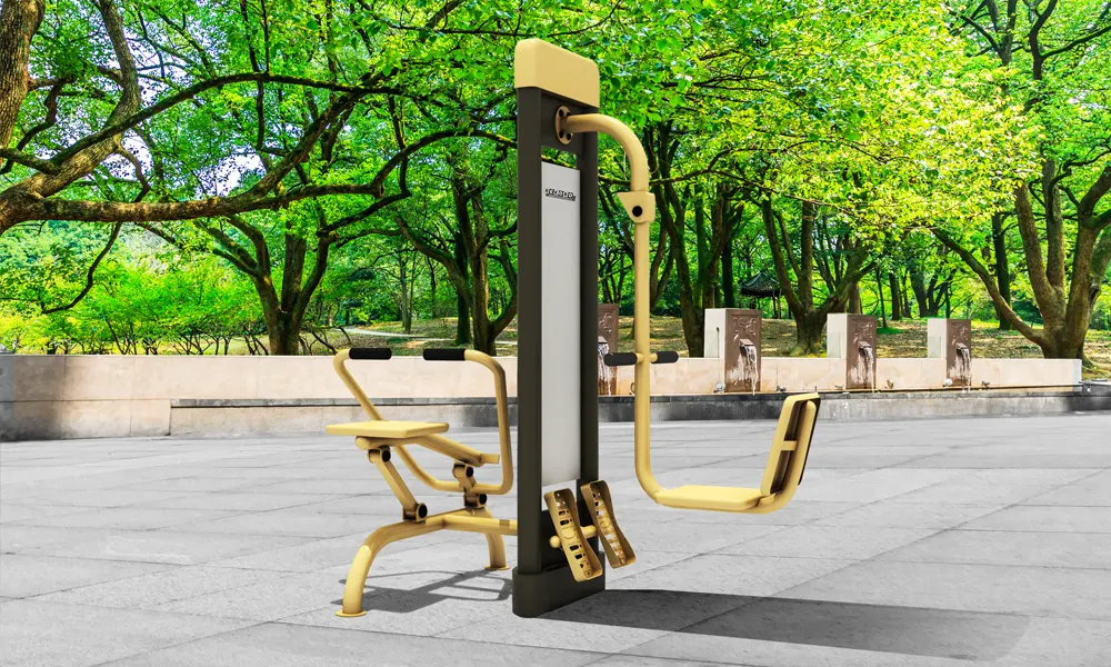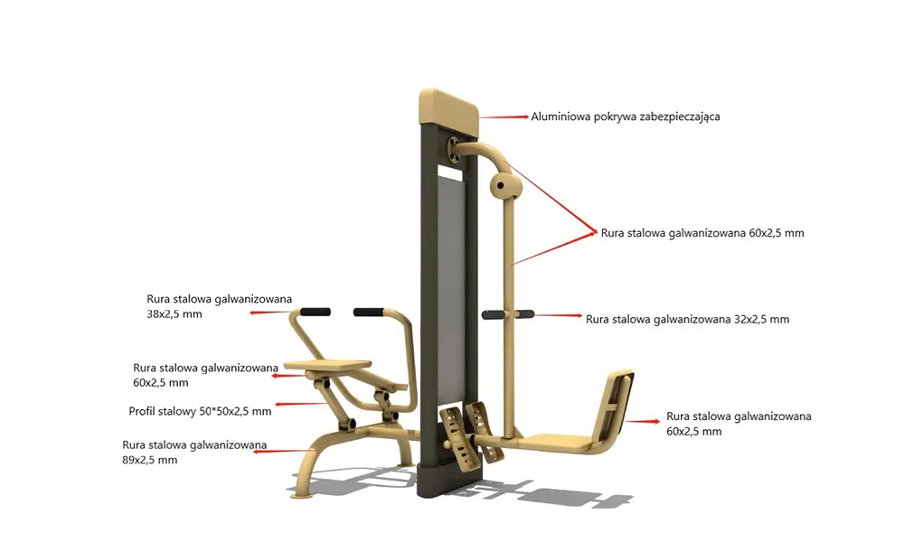 Usiądź na siedzisku, postaw obie stopy na podestach i złap rękami za oba uchwyty. Przyciągaj uchwyty do brzucha jednocześnie prostując nogi. Powróć do pozycji wyjściowej. Powtarzaj ćwiczenie.