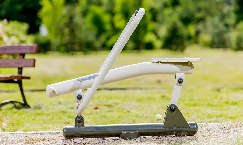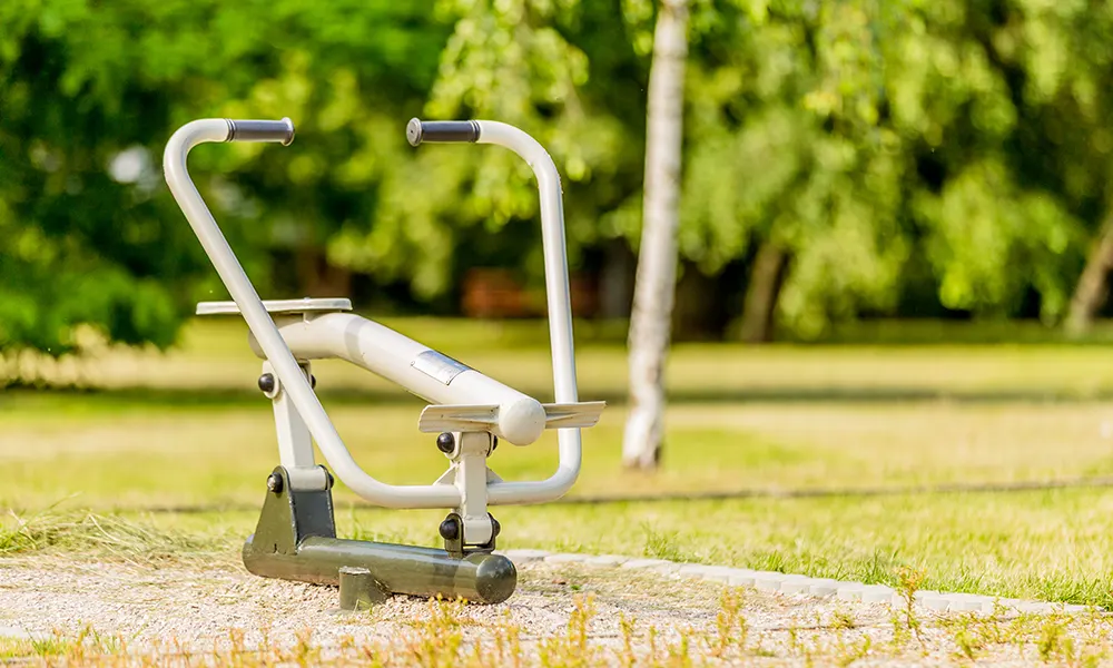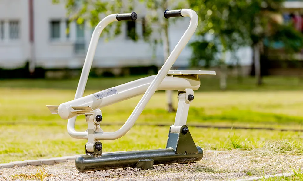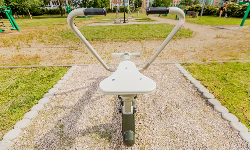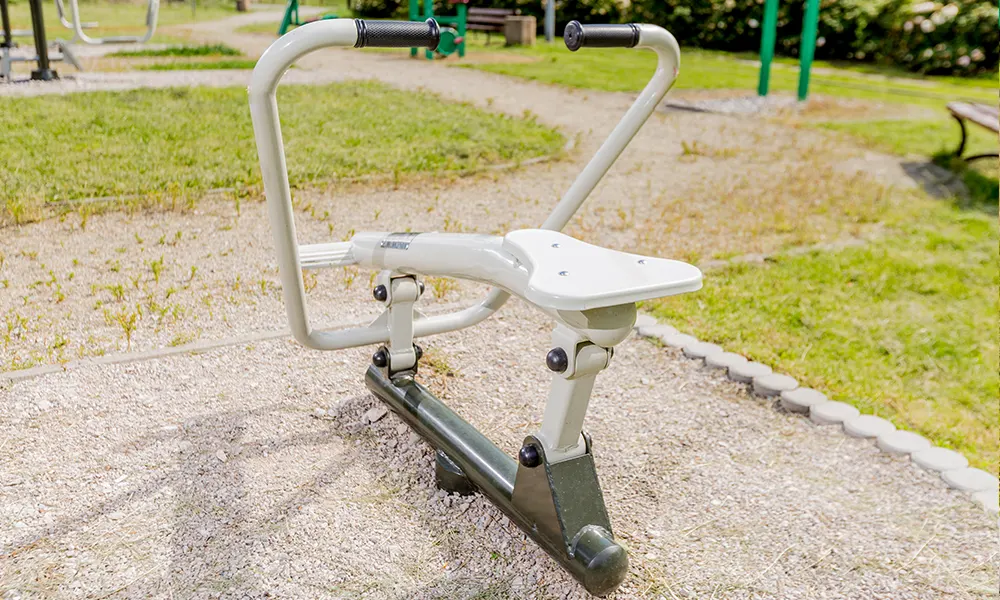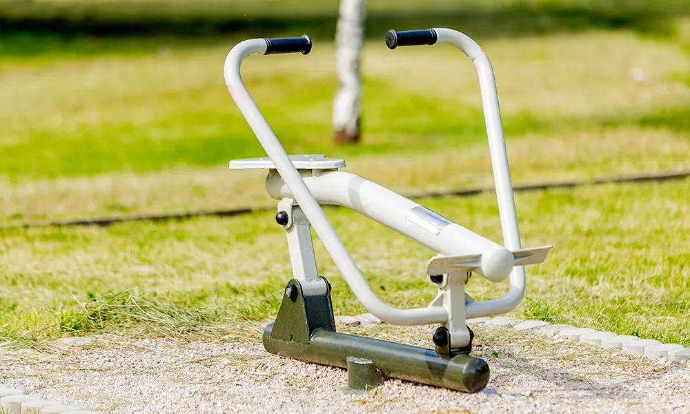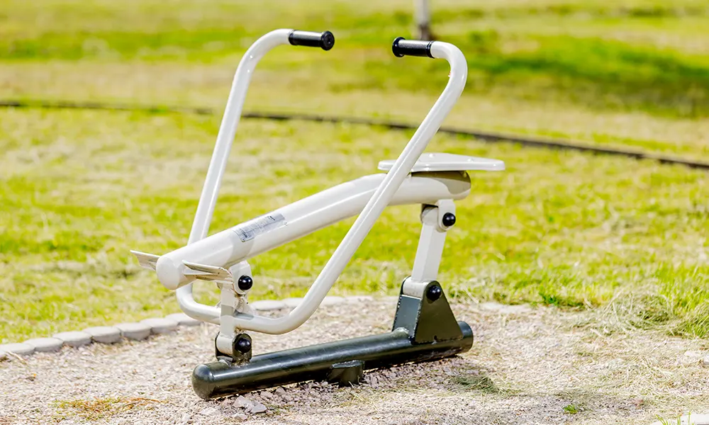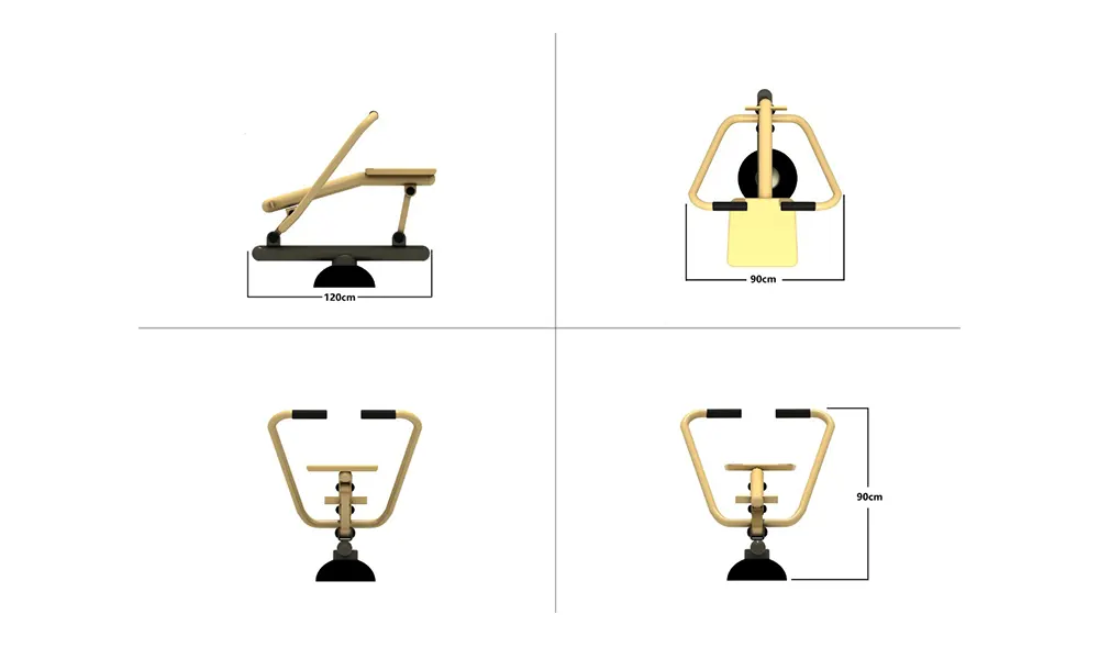 Usiądź na siedzisku, postaw obie stopy na podestach i złap rękami za oba uchwyty. Przyciągaj uchwyty do brzucha jednocześnie prostując nogi. Powróć do pozycji wyjściowej. Powtarzaj ćwiczenie.