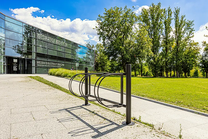 Często pod sklepami, szczególnie w centrum miast, brakuje tak potrzebnych stojaków. Wychodząc na przeciw oczekiwaniom stworzyliśmy stojak rowerowy typu „U”, który świetnie się sprawdzi w przypadku, gdy mamy do zagospodarowania małą przestrzeń. W przypadku, gdy mamy więcej miejsca polecamy stojak rowerowy Łódzki – ze względu na kilka wariantów, od 2 do 10 miejsc, łatwo dobierzemy stojak na nasze potrzeby! Kiedy poszukujemy stojaka rowerowego, od którego oczekiwalibyśmy klasycznych kształtów, proponujemy stojak rowerowy Praga. Świetnie współgra on nie tylko z budownictwem minionych epok.
